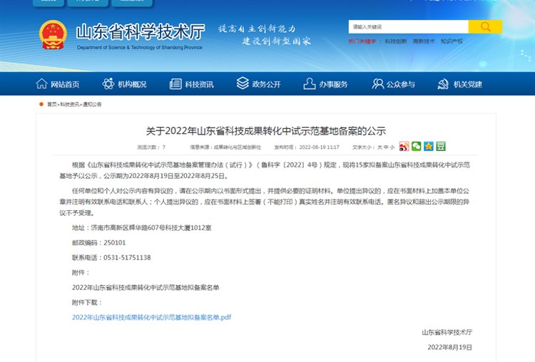 济宁一机构通过2022年山东省科技成果转化中试示